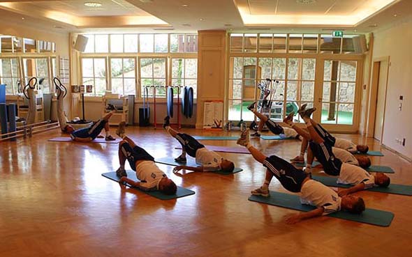 В это же время остальные футболисты, включая Олега Блохина и его помощников, вновь занимались в тренажерном зале, разделившись на две группы. Первые работали с Виталием Кулыбой непосредственно на тренажерах, а вторые, под руководством Сергея Реброва, выполняли упражнения гимнастического комплекса. И наоборот.